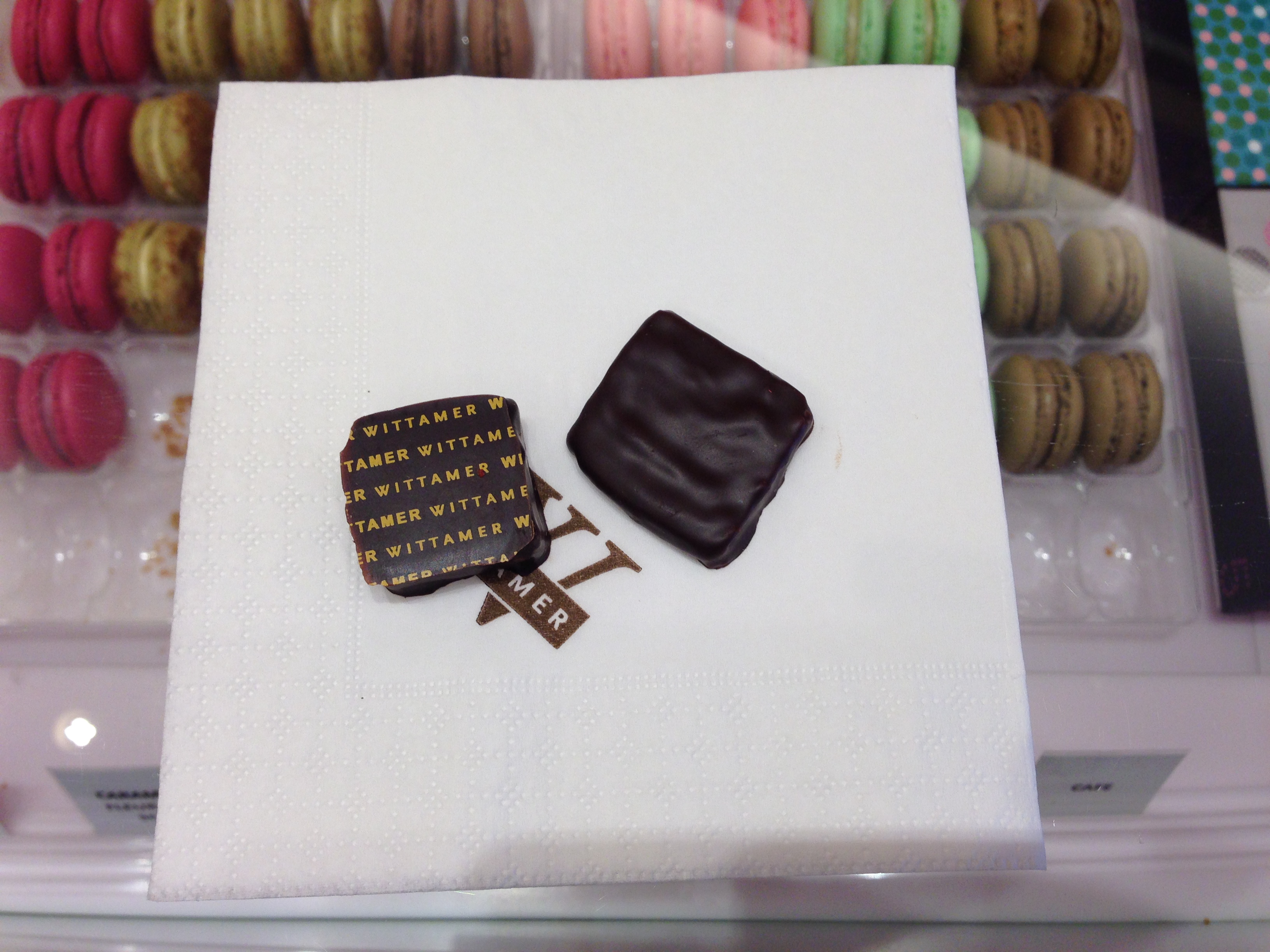 The Wittamer was fudgy. The feuillantine reminded me of a Kit-Kat Bar. I found both to be a bit too sweet.