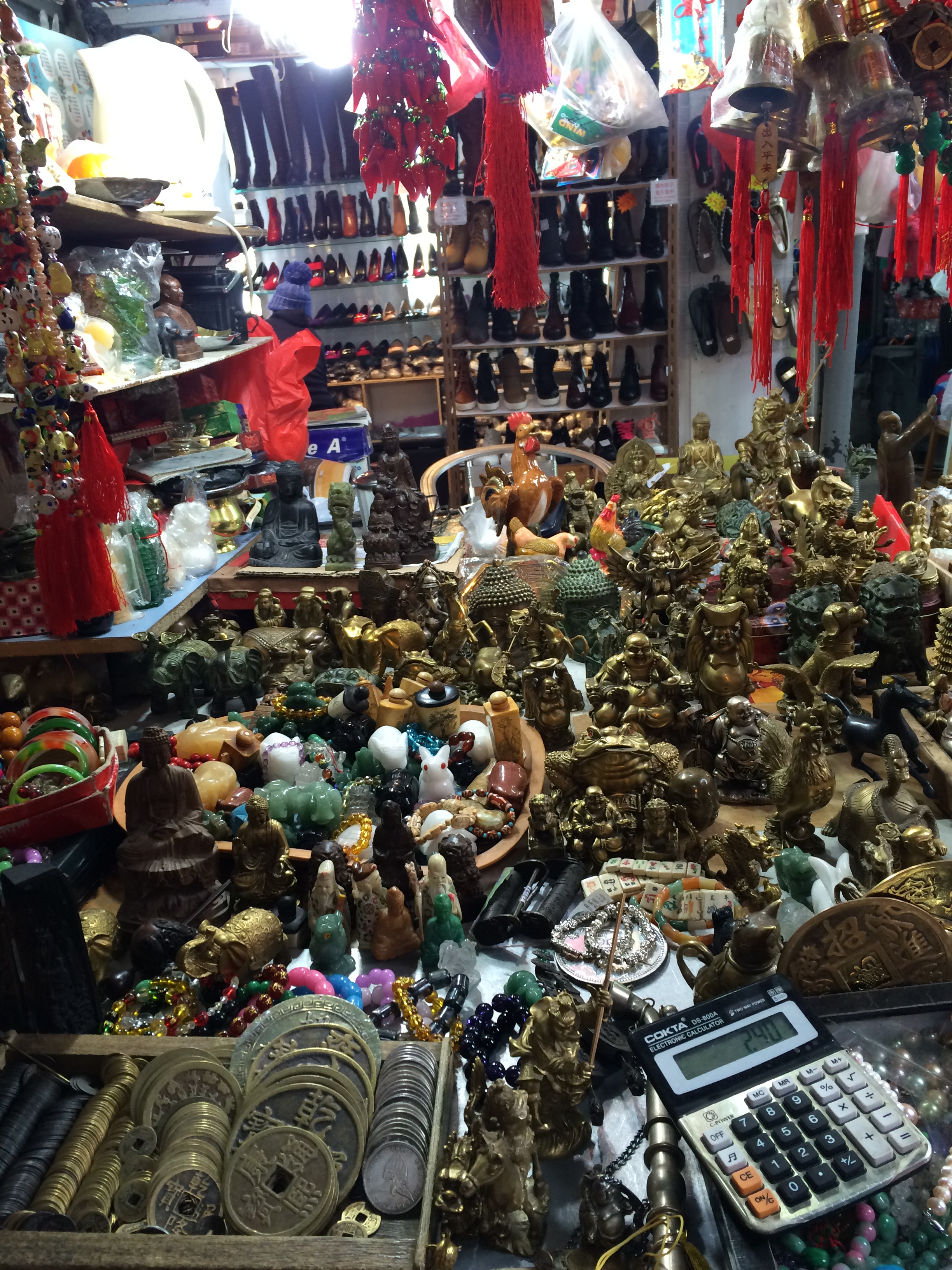 In India, we had been looking for a pair of tiny elephant statues to bring home, but my husband spotted them out of the corner of his eye in this cluttered market stall in Hong Kong. Despite negotiating the price down by 25 Hong Kong Dollars, we still got gouged, I am fairly certain.